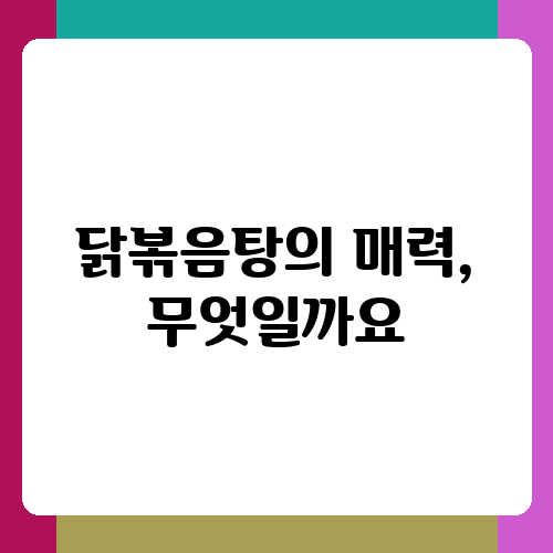 오늘 저녁은 닭볶음탕과 시원한 술 한잔 어떠세요? 매콤한 닭볶음탕과 술의 조합은 잊지 못할 추억을 만들어줄 거예요! 어떤 술과 어떤 사이드 메뉴를 선택할지 고민하며, 즐거운 시간을 보내시길 바랍니다. 지금 바로 닭볶음탕을 주문해보세요!