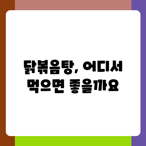 닭볶음탕은 집에서 직접 만들어 먹는 것도 좋지만, 맛집에서 먹는 것도 색다른 경험이 될 수 있습니다. 각 지역마다 닭볶음탕 맛집들이 많으니, 인터넷 검색을 통해 후기를 찾아보고 취향에 맞는 곳을 선택해보세요. 평점이 높은 곳일수록 믿음직스럽고, 사진을 보고 메뉴를 고르는 것도 도움이 될 거예요. 또한, 주변 친구들, 또는 가족들과 함께 가서 여러 종류의 닭볶음탕을 나눠 먹는 것도 추천합니다. 다양한 맛을 비교하며 먹는 재미도 쏠쏠할 거예요. 혹시 모르는 맛집을 발견하는 행운도 누릴 수 있겠죠? 맛있는 닭볶음탕을 찾아 떠나보세요!