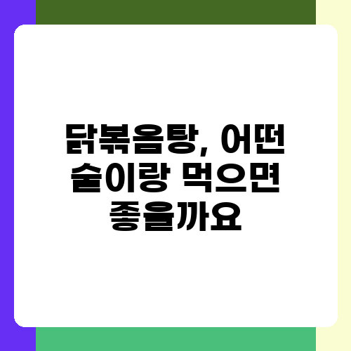 닭볶음탕은 다양한 술과 잘 어울리는 만능 안주입니다. 맥주는 닭볶음탕의 매콤함을 시원하게 잡아주는 역할을 하며, 소주는 닭볶음탕의 진한 맛을 더욱 깊게 느낄 수 있도록 도와줍니다. 또한 막걸리는 닭볶음탕의 감칠맛과 잘 어울려 깔끔한 마무리를 선사합니다. 취향에 따라 와인을 선택하는 것도 좋은데요, 좀 더 색다른 맛을 경험해보고 싶다면 드라이한 레드와인을 추천합니다. 어떤 술을 선택하든 닭볶음탕과 함께라면 즐거운 시간을 보낼 수 있을 거예요. 저는 개인적으로 시원한 생맥주 한 잔을 가장 먼저 생각하는데요, 닭볶음탕의 매콤한 맛과 시원한 맥주가 정말 잘 어울린답니다. 여러분은 어떤 술과 닭볶음탕을 즐기시겠어요?